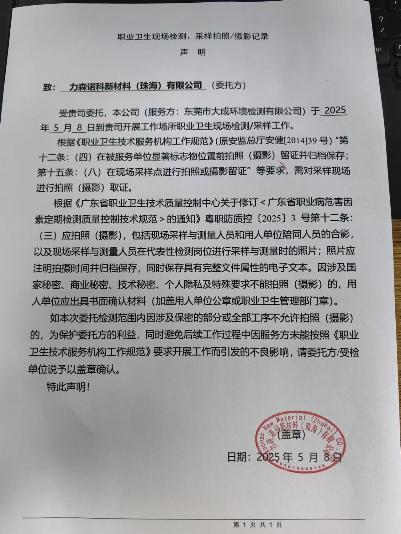 力森诺科新材料(珠海)有限公司定期检测 |