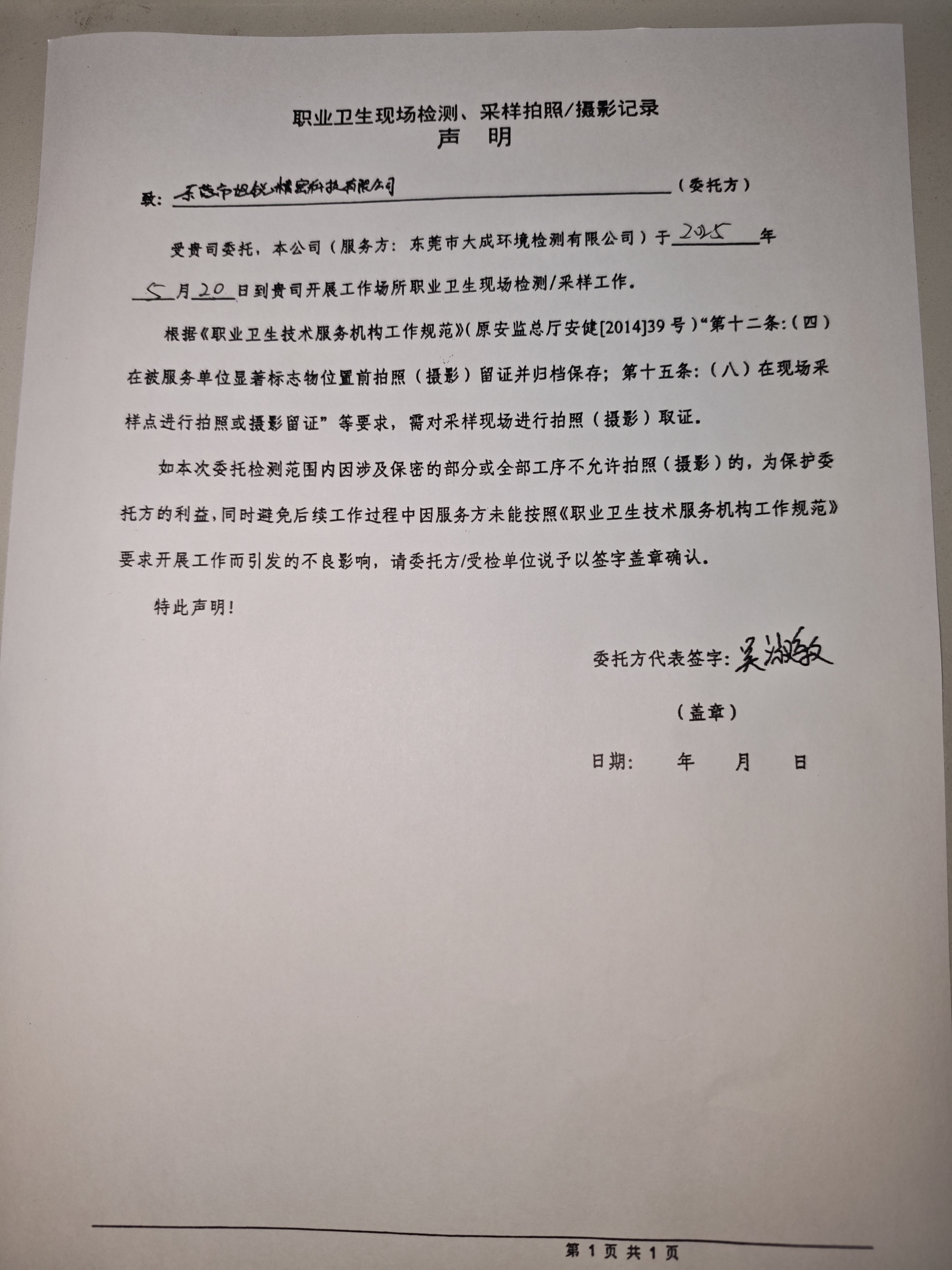 东莞市旭锐精密科技有限公司定期检测网上公开
