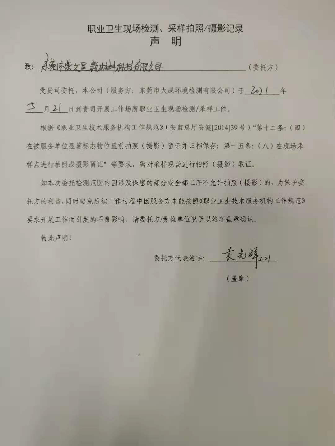 东莞市紫文星新材料科技有限公司定期检测 |