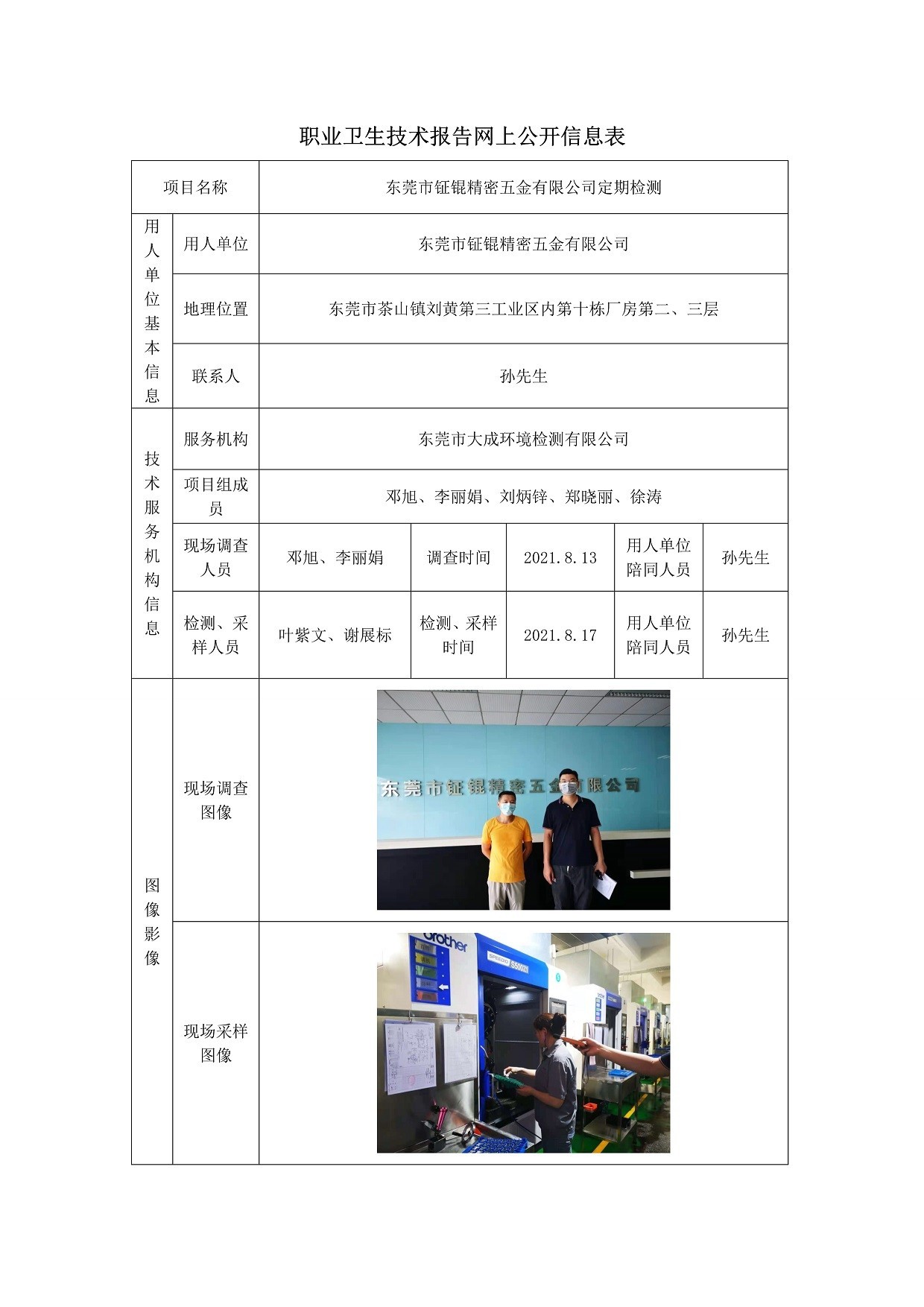 东莞市钲锟精密五金有限公司定期检测网上公开