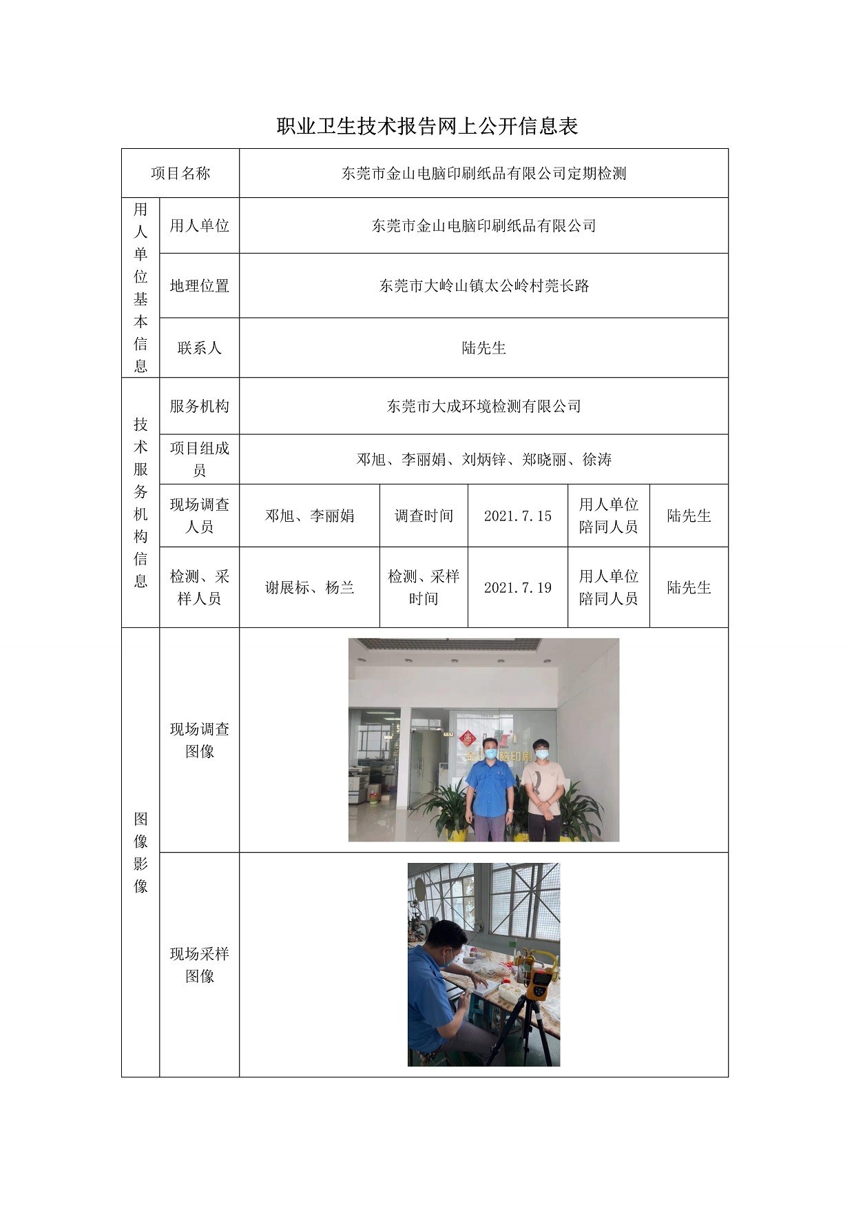 东莞市金山电脑印刷纸品有限公司定期检测网上公开