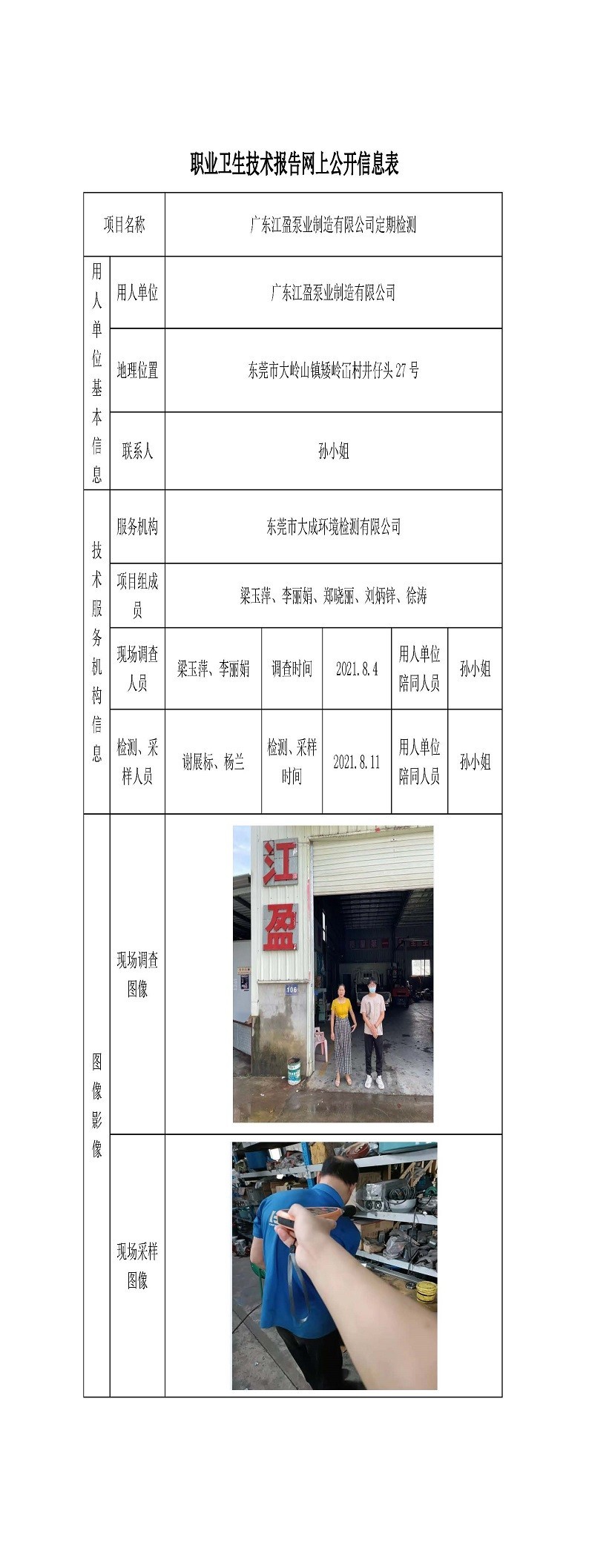 广东江盈泵业制造有限公司定期检测网上公开