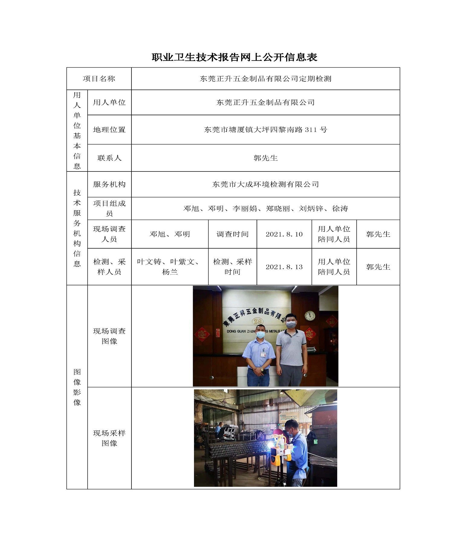 东莞正升五金制品有限公司定期检测网上公开