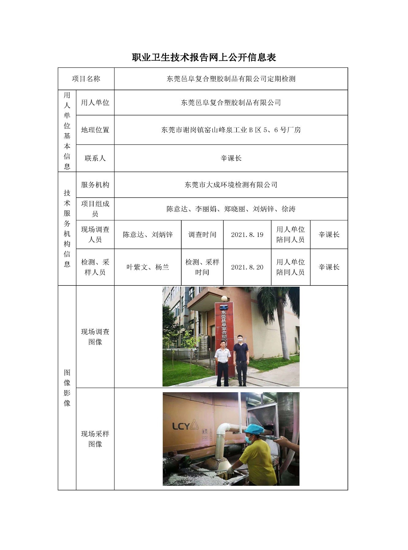 东莞邑阜复合塑胶制品有限公司定期检测网上公开