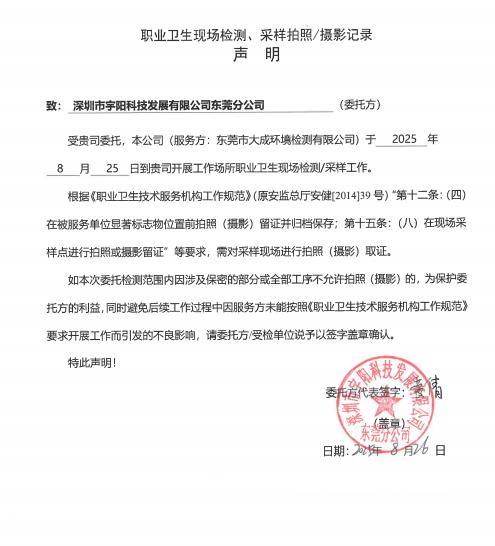 | 报告名称 | 深圳市宇阳科技发展有限公司东莞分公司职业病危害定期检测报告书 | |||||